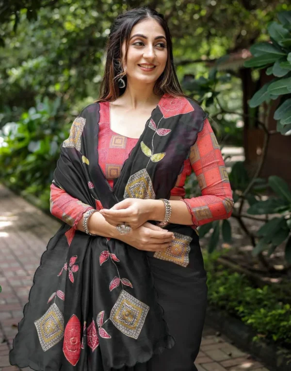 Floral Printed Saree with Silk Banglory Blouse